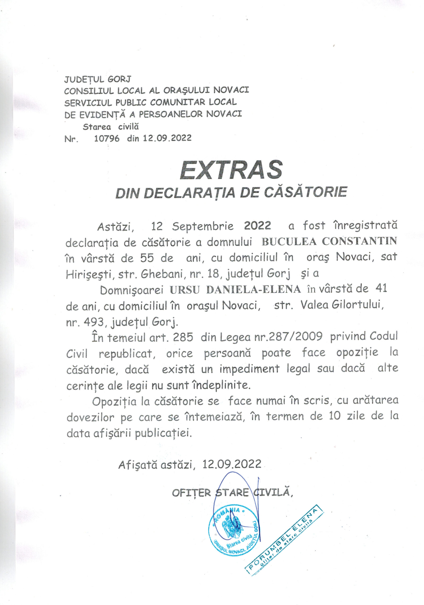 Extras Căsătorie – Buculea Constantin și Ursu Daniela-Elena