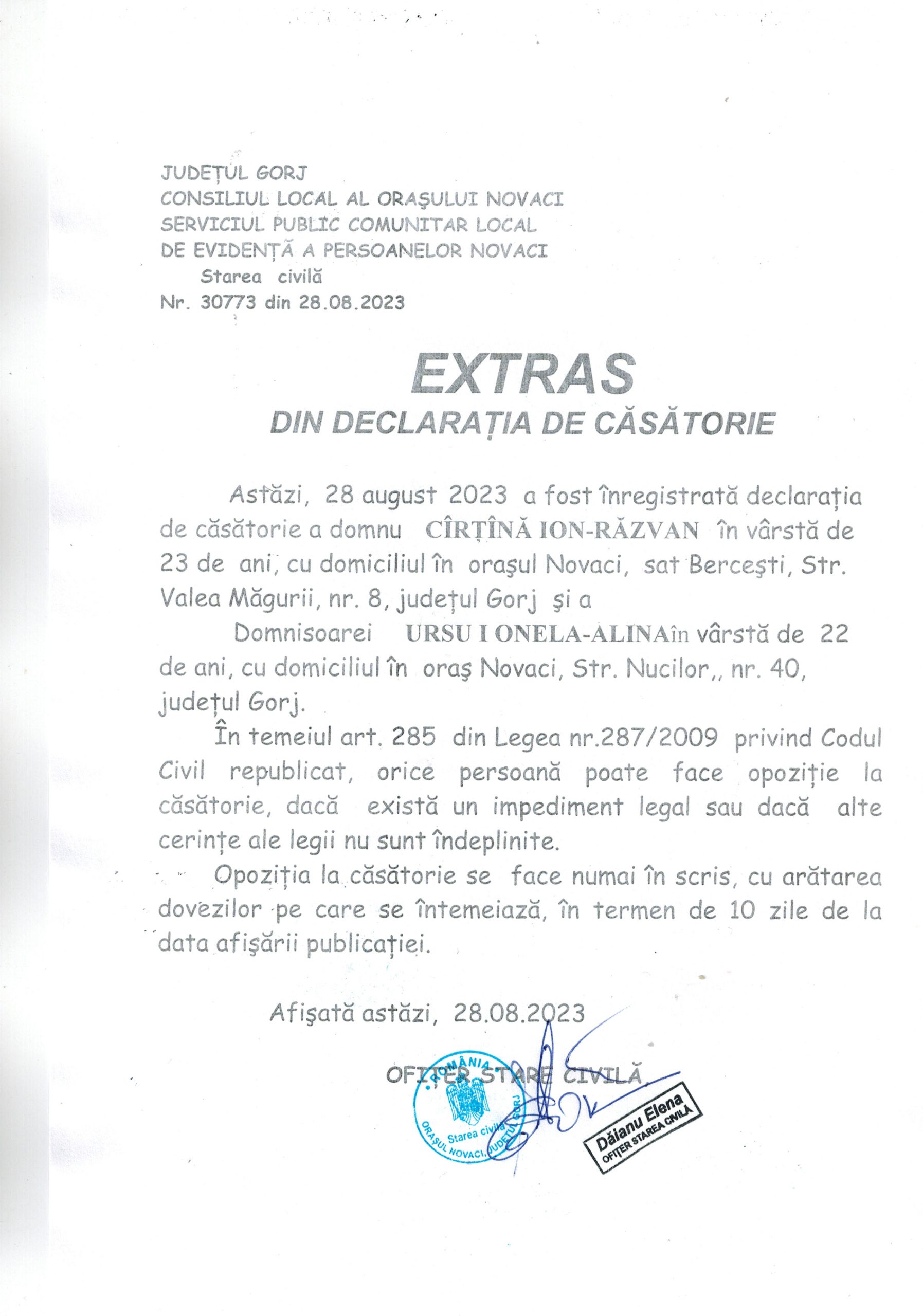 Extras Căsătorie – Cîrțînă Ion-Răzvan și Ursu Ionela-Alina