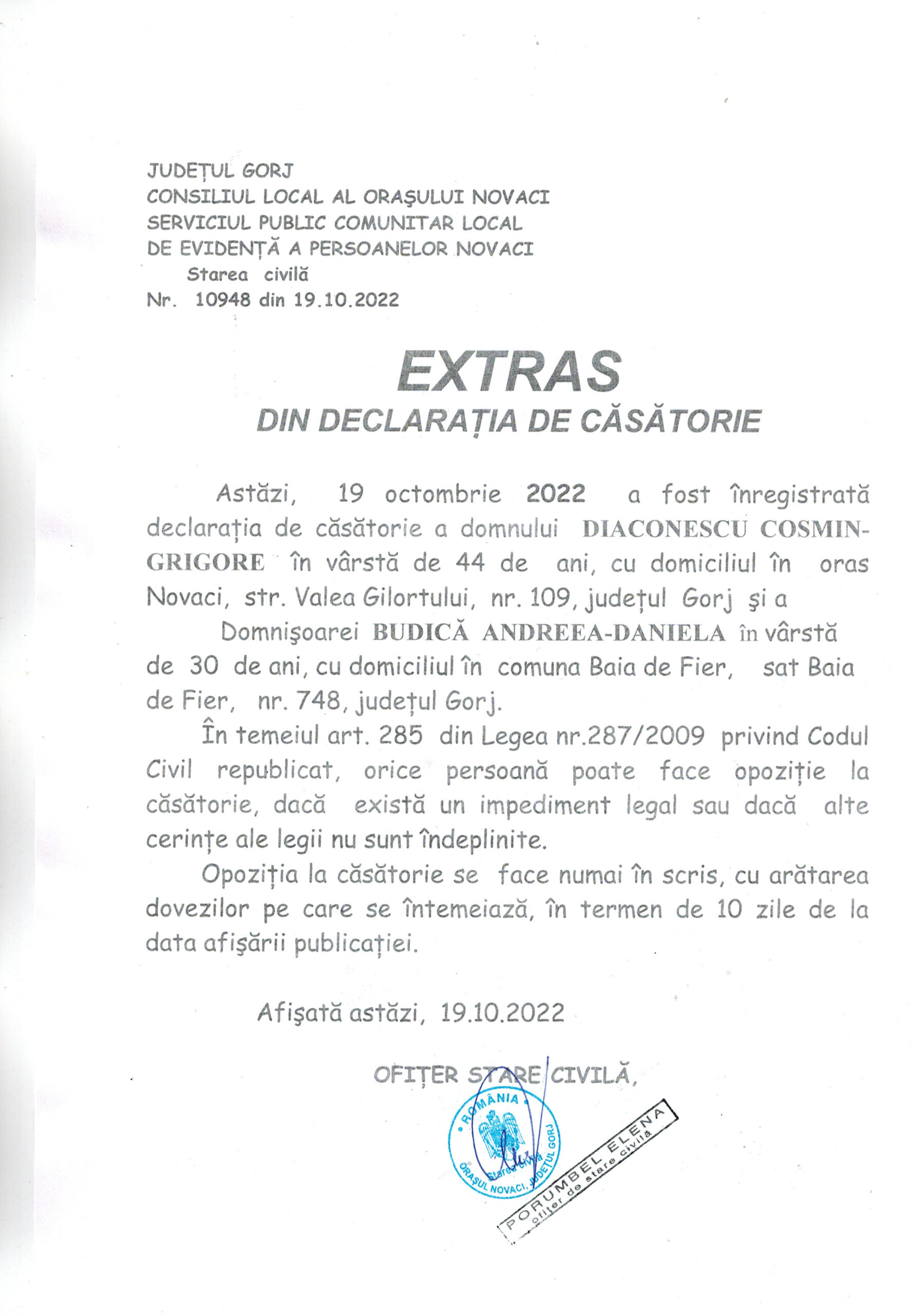 Extras Căsătorie – Diaconescu Cosmin-Grigore și Budică Andreea-Daniela