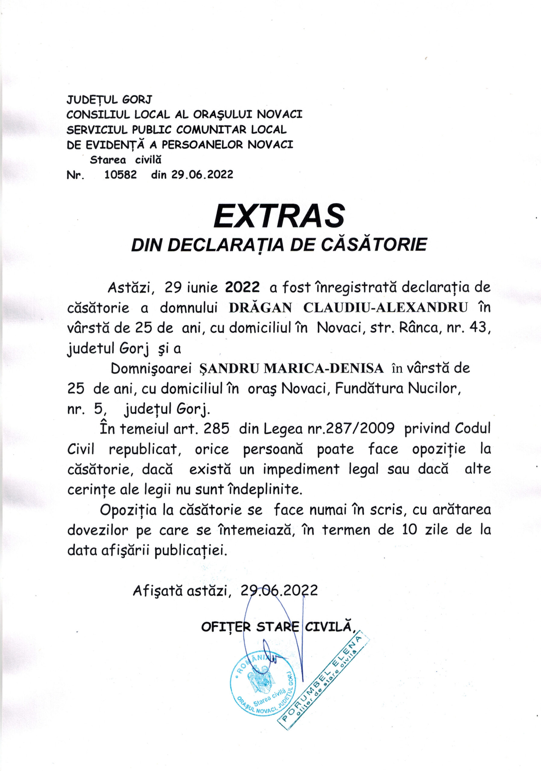 Extras Căsătorie – Drăgan Claudiu-Alexandru și Șandru Marica-Denisa