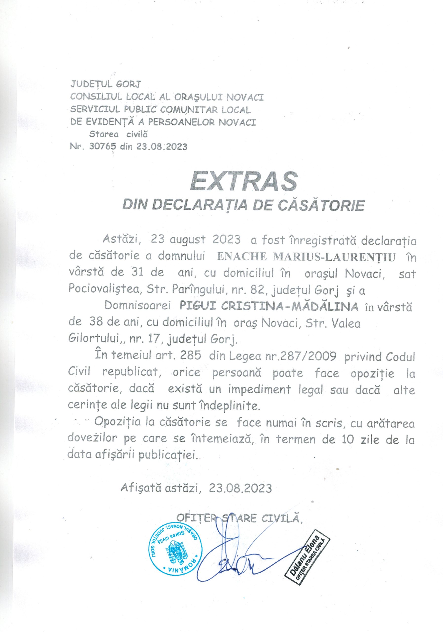 Extras Căsătorie – Enache Marius-Laurențiu și Pigui Cristina-Mădălina