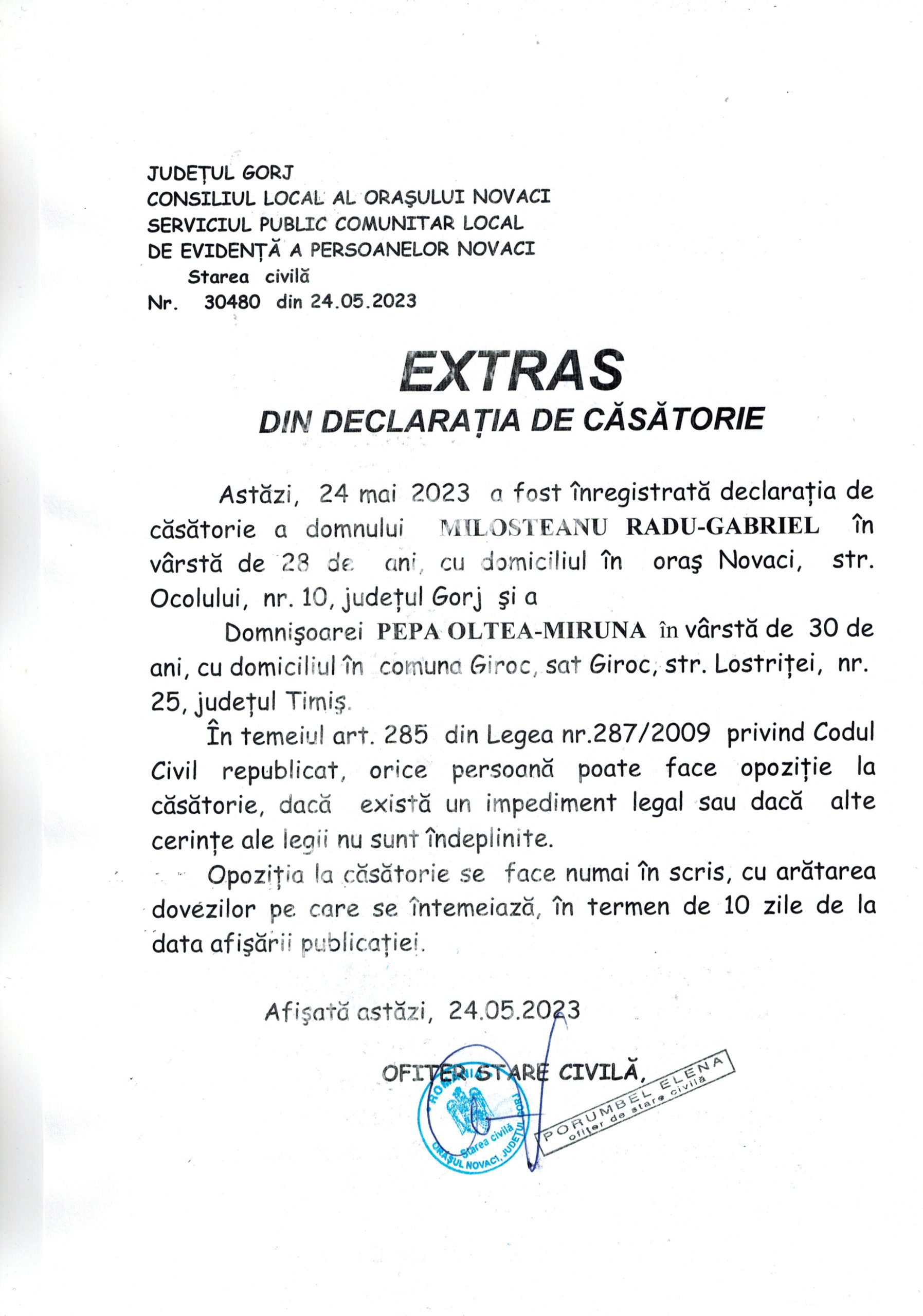 Extras Căsătorie – Milosteanu Radu-Gabriel și Pepa Oltea-Miruna