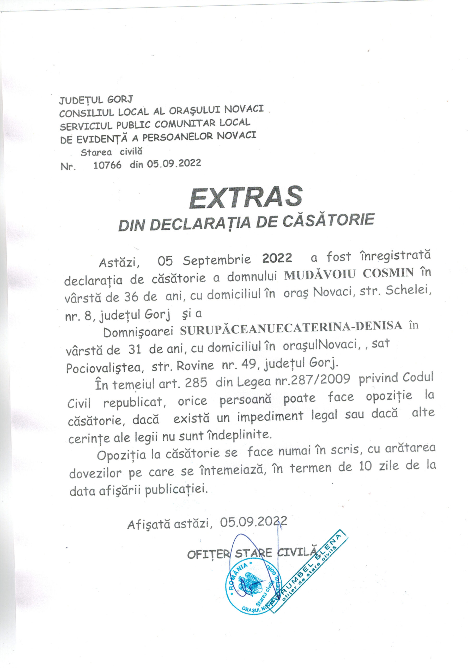 Extras Căsătorie – Mudăvoiu Cosmin și Surupăceanu Ecaterina-Denisa