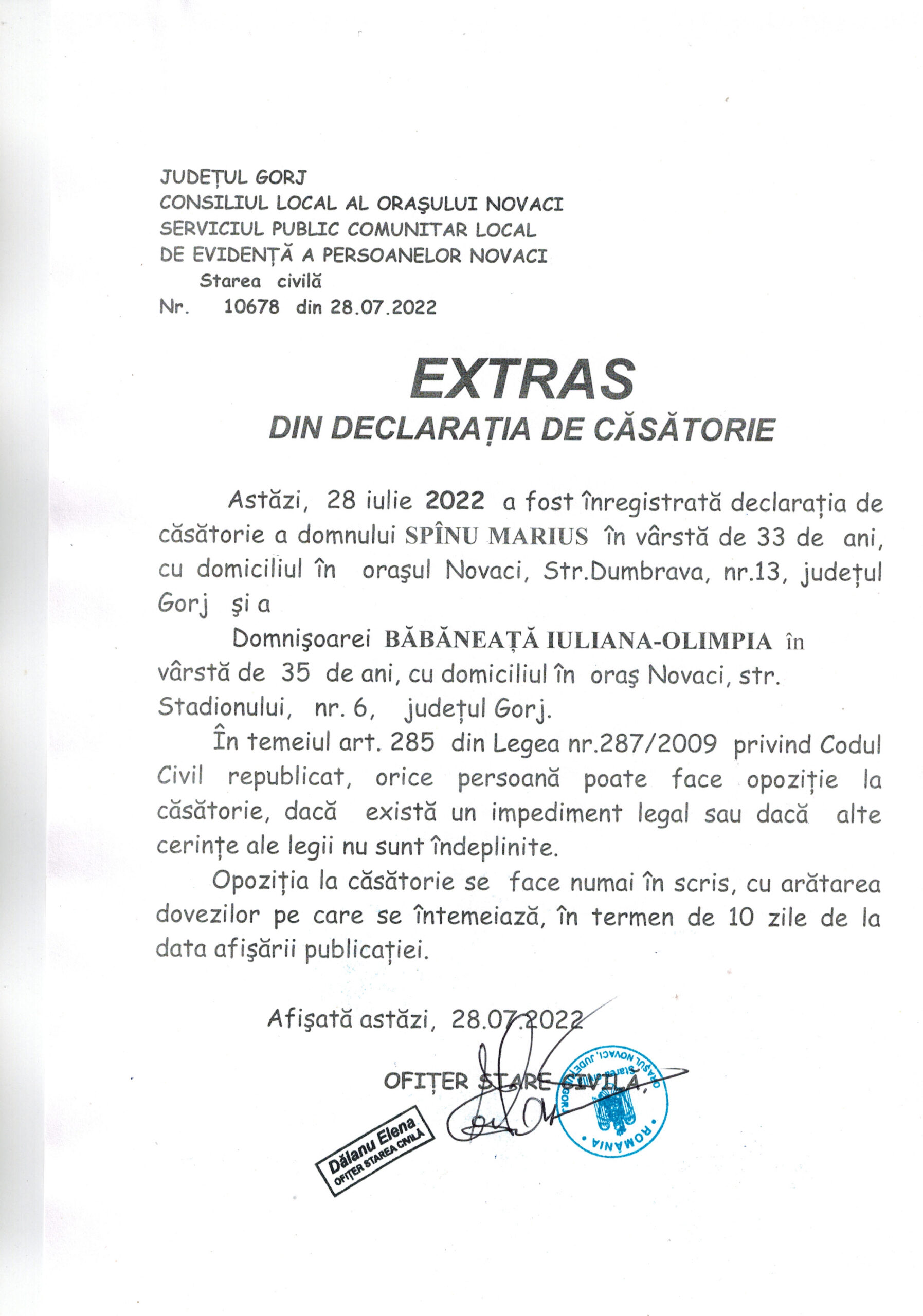 Extras Căsătorie – Spînu Marius și Băbăneață Iuliana-Olimpia