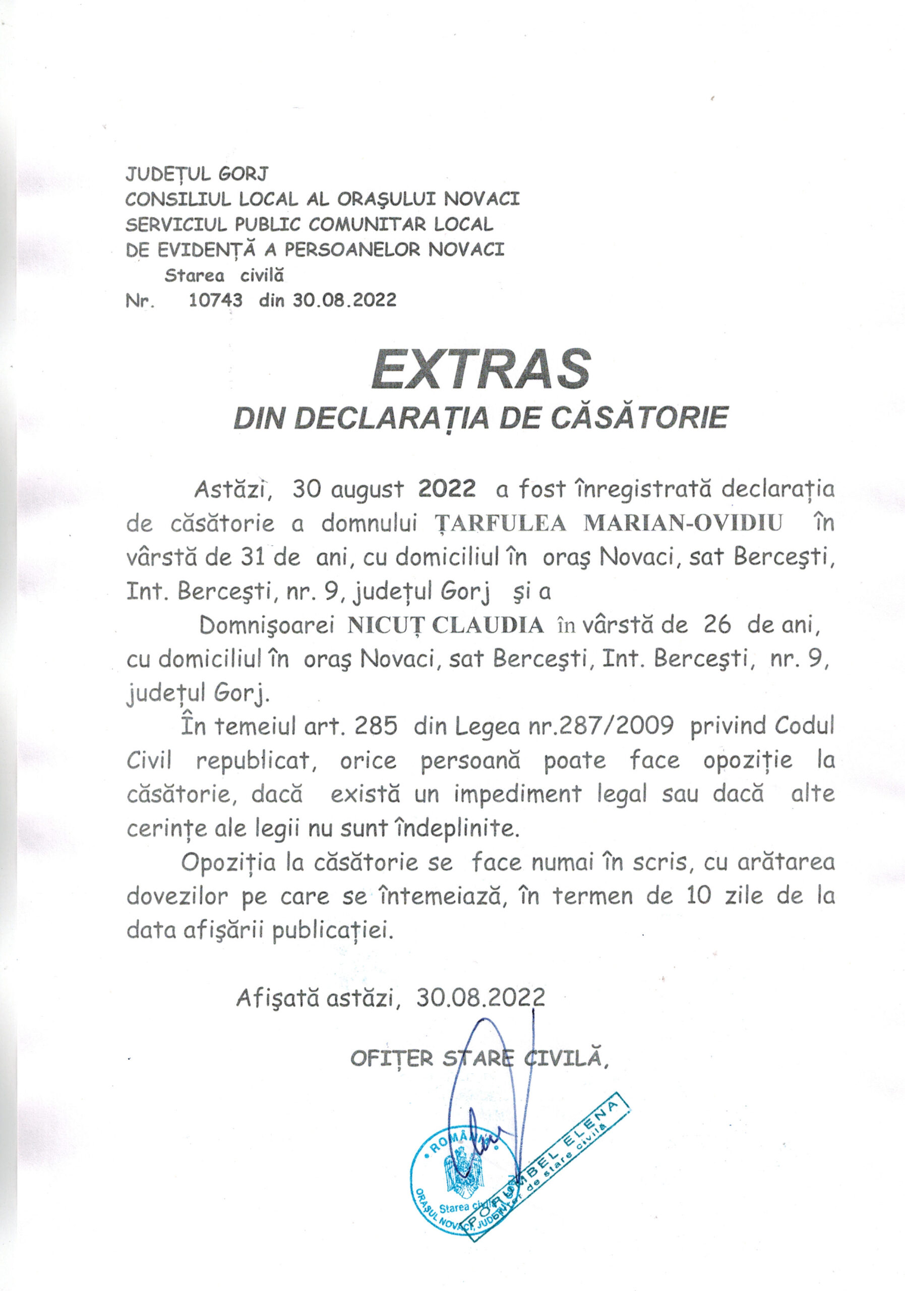 Extras Căsătorie – Țarfulea Marian-Ovidiu și Nicuț Claudia